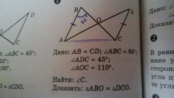 На рисунке 1 угол АВО углу ДСО 90 градусов