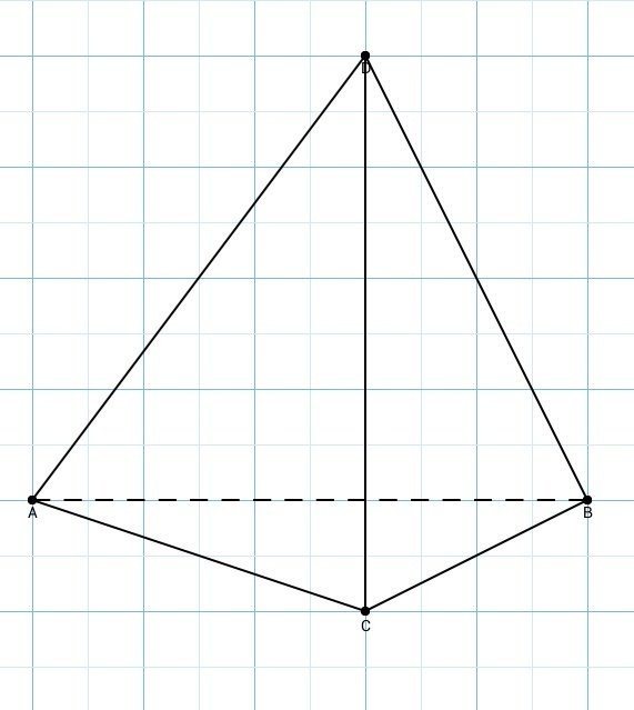 Четырехугольная пирамида на клетчатой бумаге