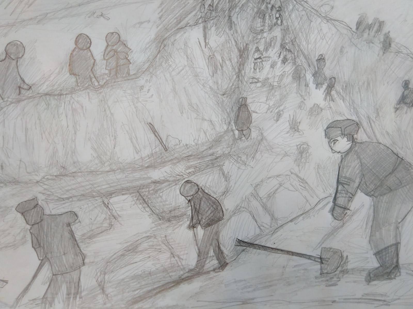 Строители Сурского и Казанского оборонительного рубежа рисунок