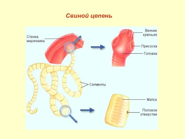![Схема жизненного цикла свиного и бычьего цепня]()