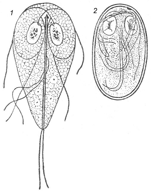 ![Циста и трофозоит лямблии]()