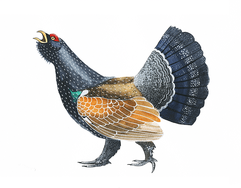 ![Глухарь. Гравюра Виктора Вахлюева]()