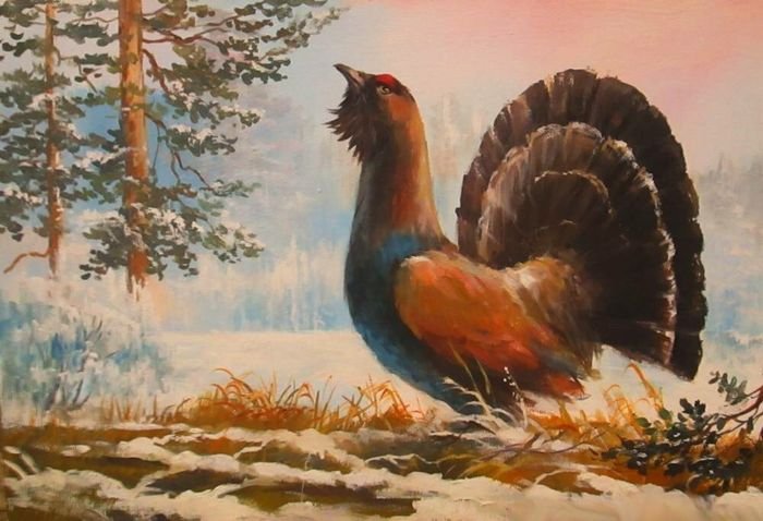 Глухарь - это крупная птица семейства тетеревиных, которая обитает в лесах Европы и Азии. Он отличается своей яркой окраской оперения и величественной внешностью. Глухарь является объектом интереса многих художников и любителей живописи, что объясняется его прекрасной эстетической привлекательностью. Рисунок глухаря может стать украшением интерьера или подарком для любителей природы и искусства. Такой рисунок не только передаст красоту и неповторимость этой птицы, но и создаст атмосферу природной гармонии и спокойствия в помещении.