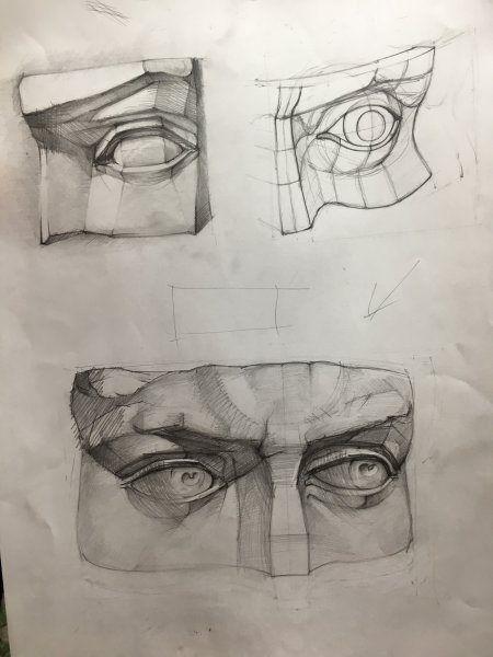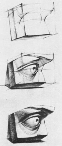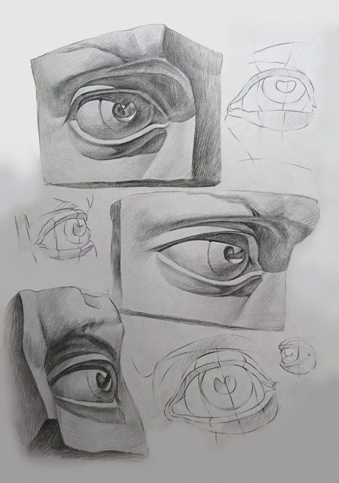 Рисунок гипсового слепка глаза Давида