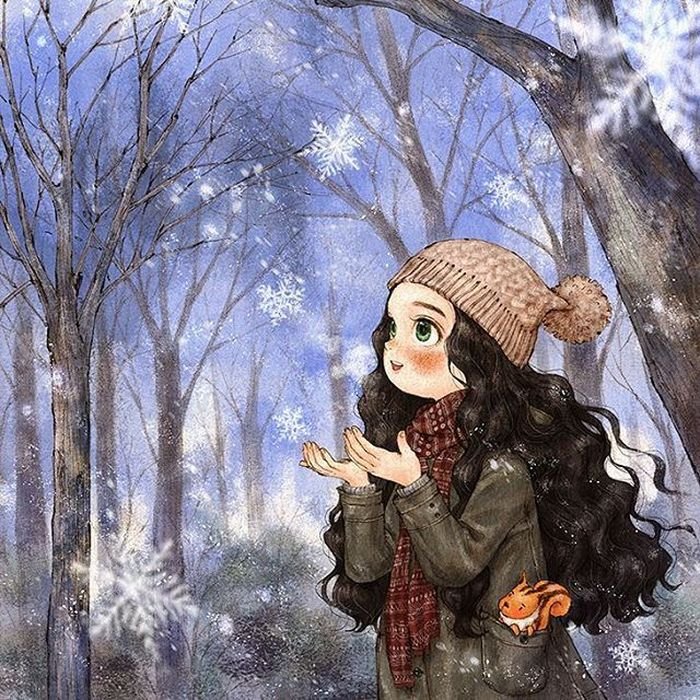 Девушка зима мультяшная