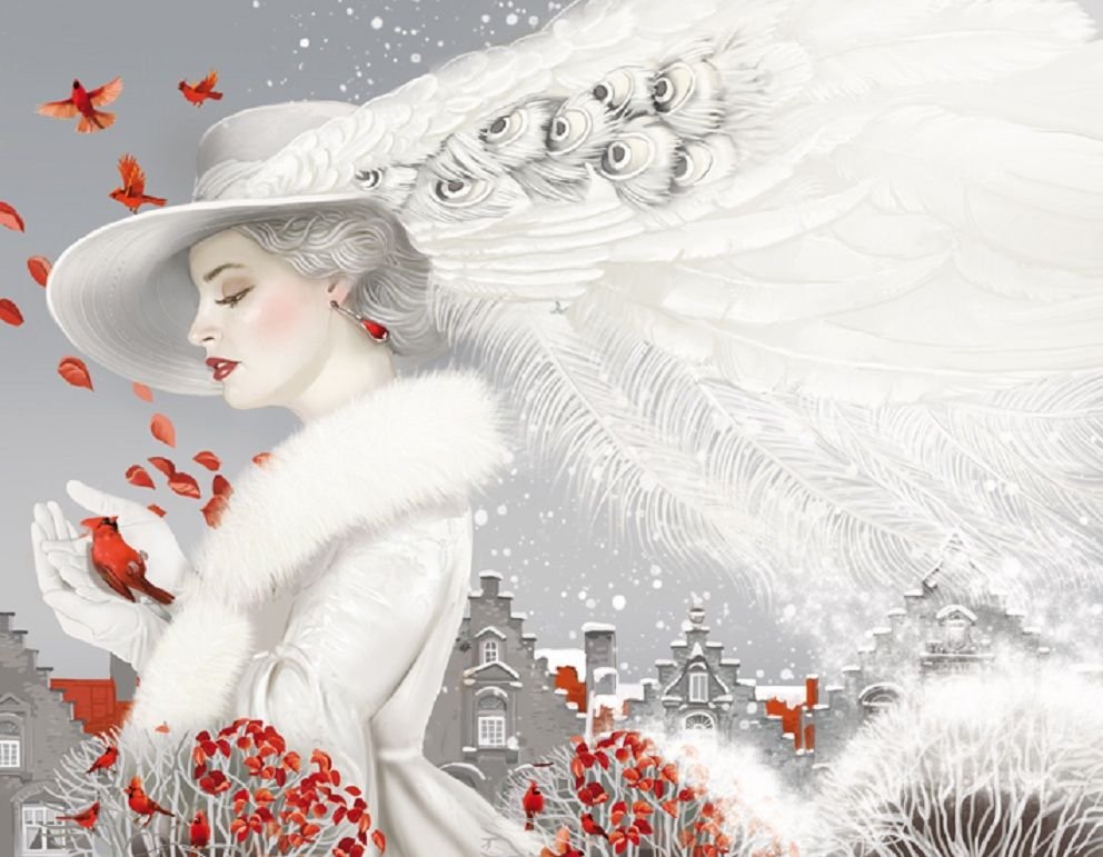 ![Девушка зима живопись]()