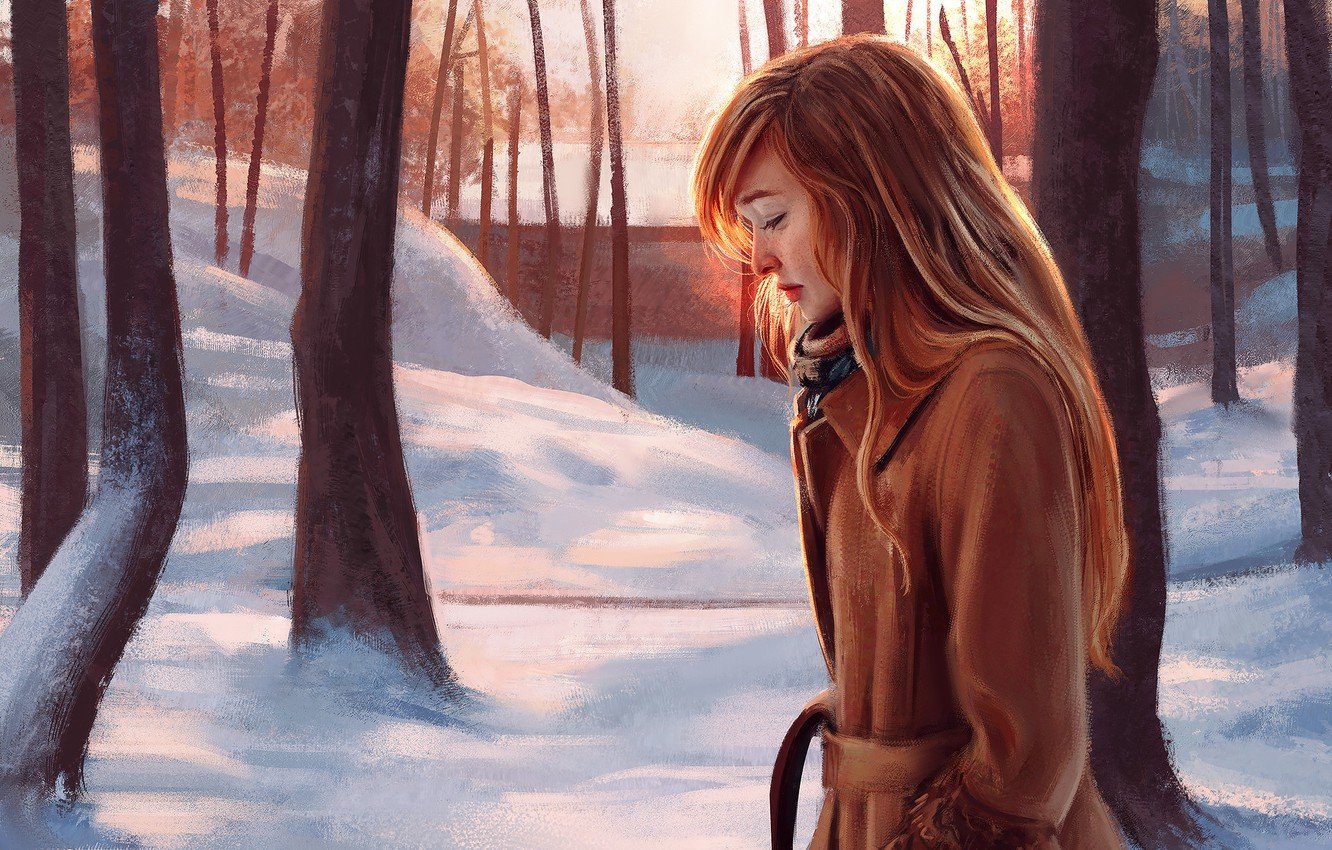 ![Девушка зимой арт]()