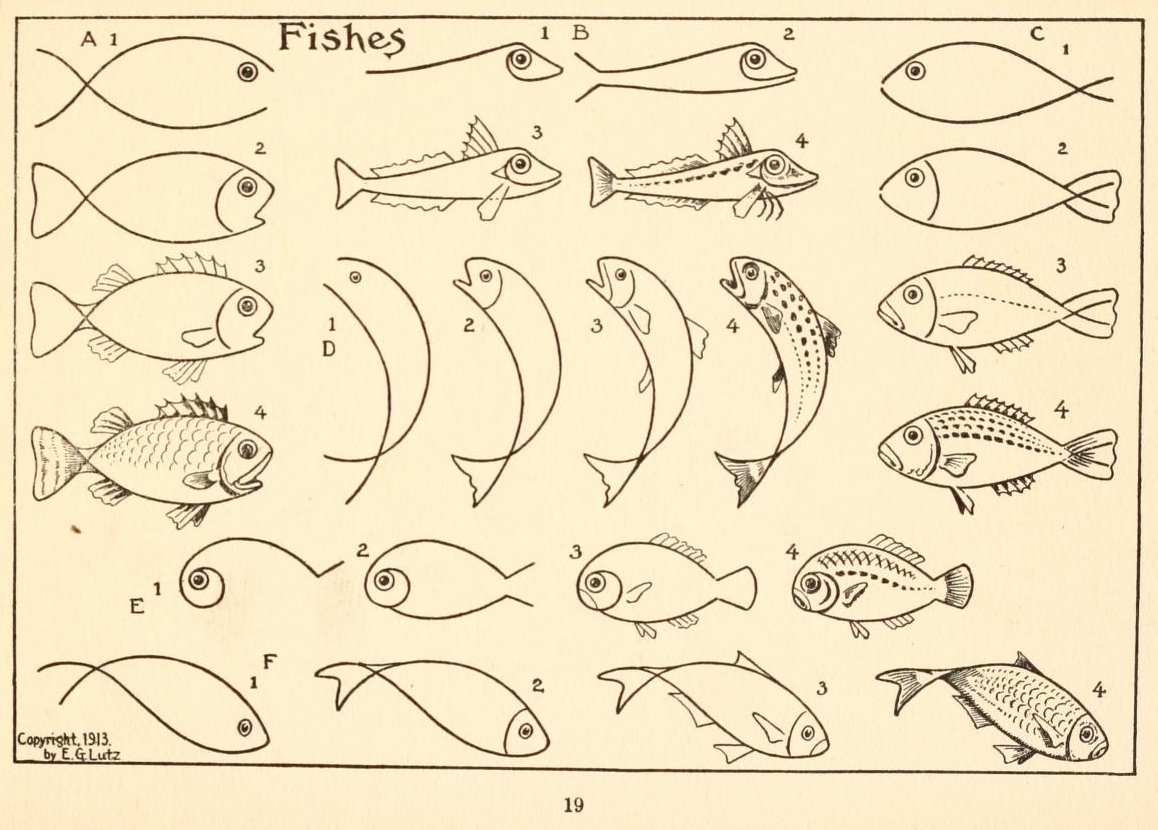 Схема рисования рыбы