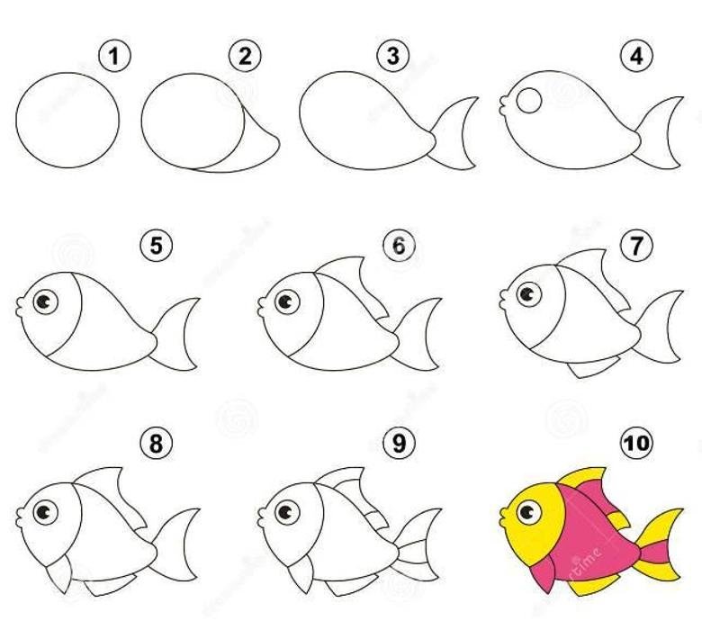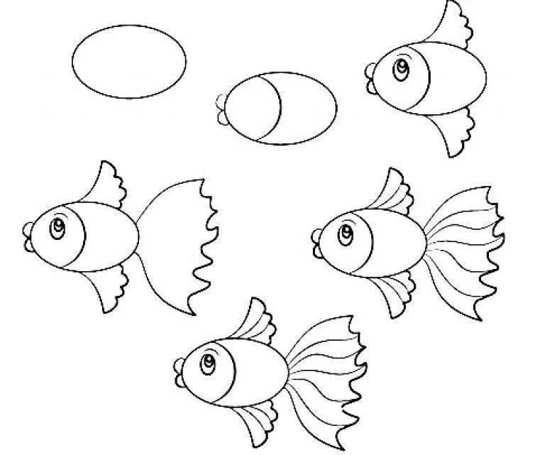 Рисование рыбки поэтапно для детей