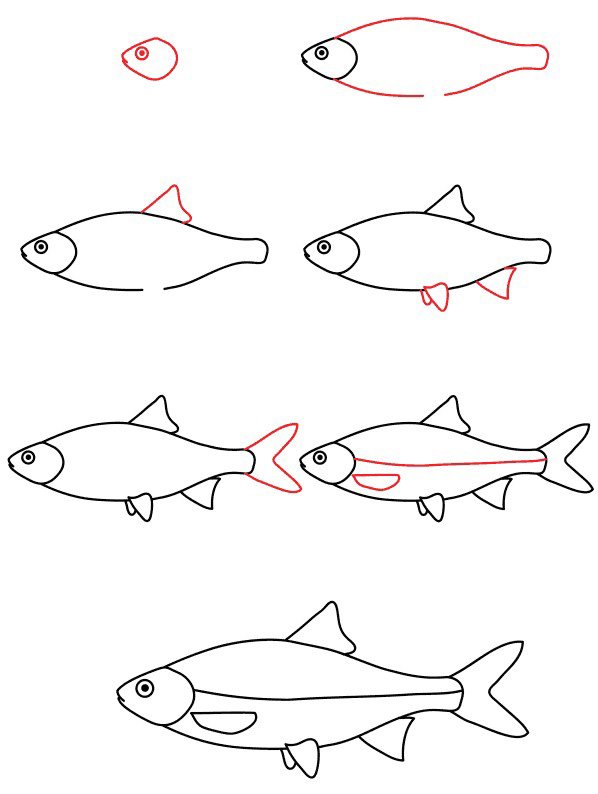 Этапы рисования рыбы