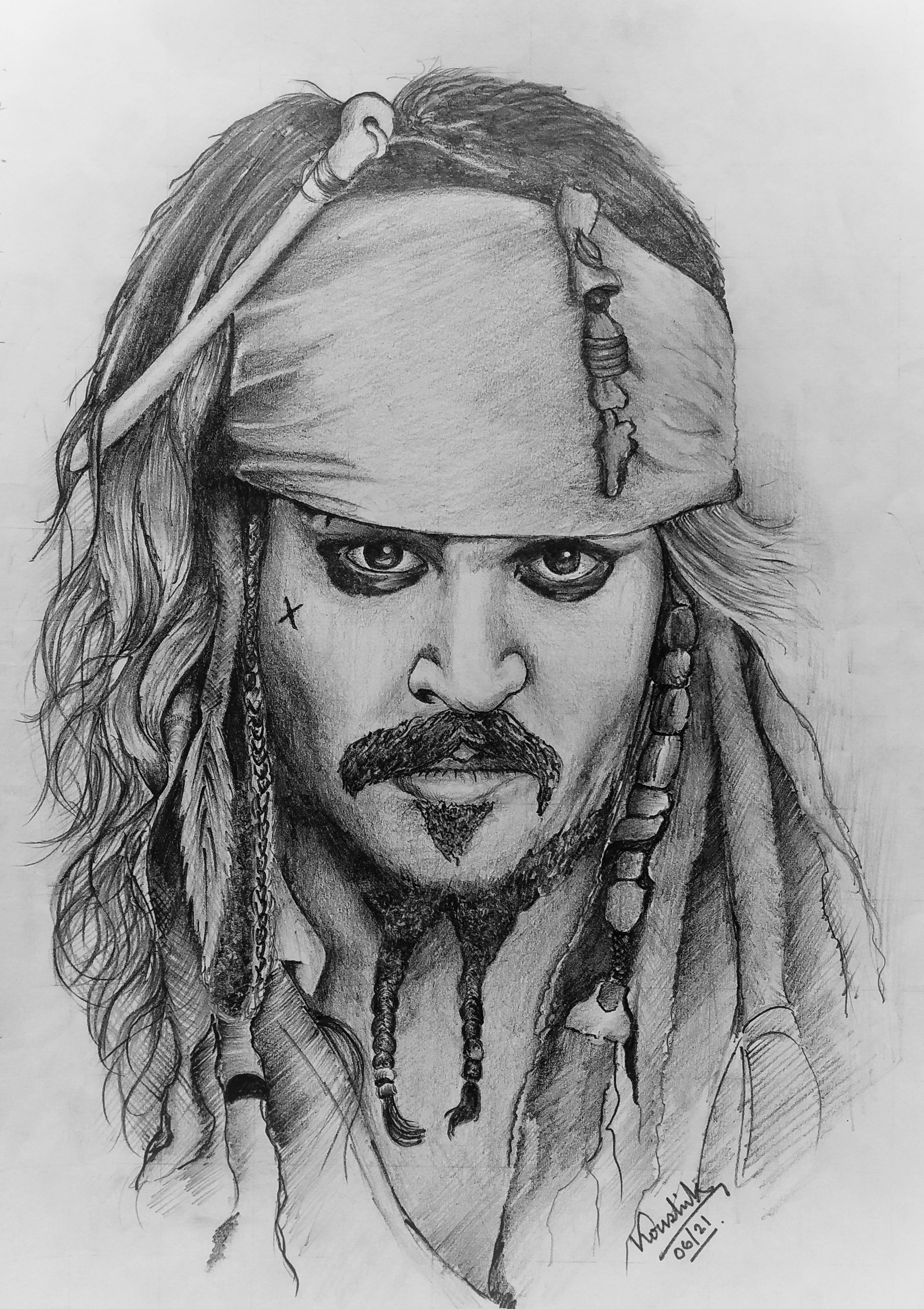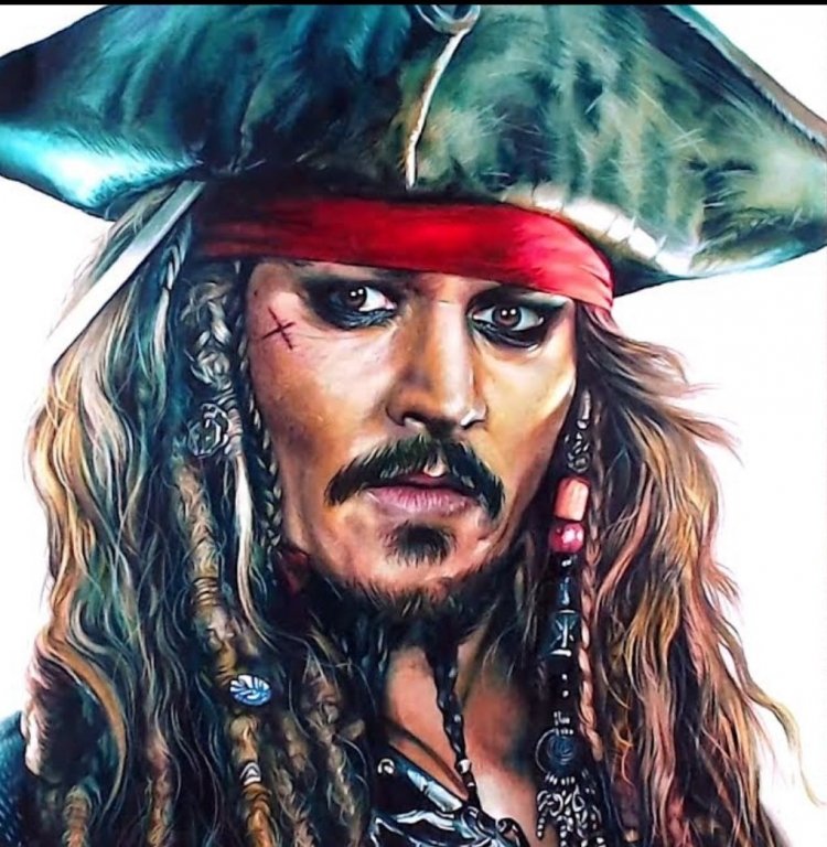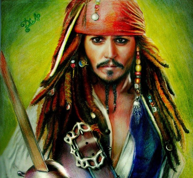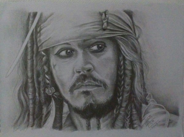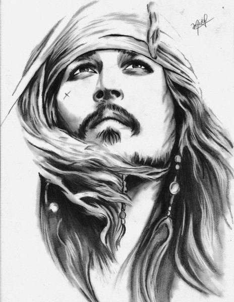 ![Портрет Джонни Деппа Капитан Джек Воробей]()