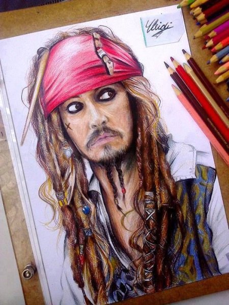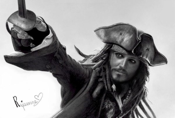 ![Пираты Карибского моря Джонни Депп Капитан Воробей рисунок]()