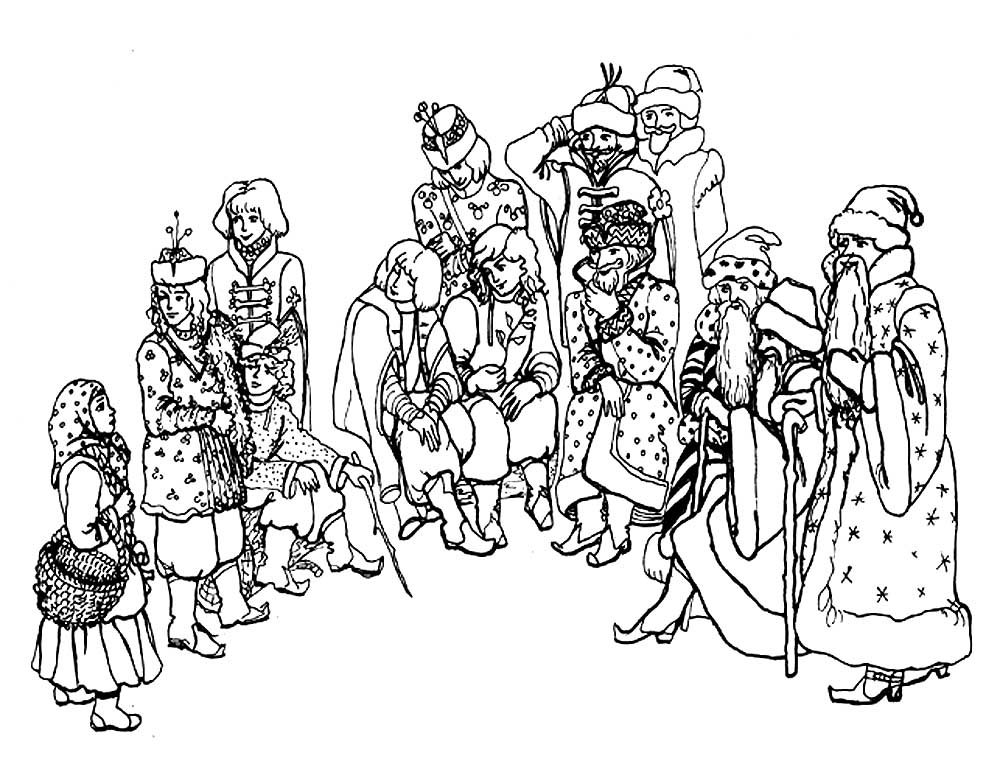 Раскраски к сказке 12 месяцев для детей