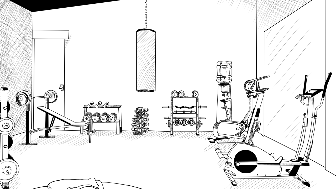 ![Нарисованный тренажерный зал]()