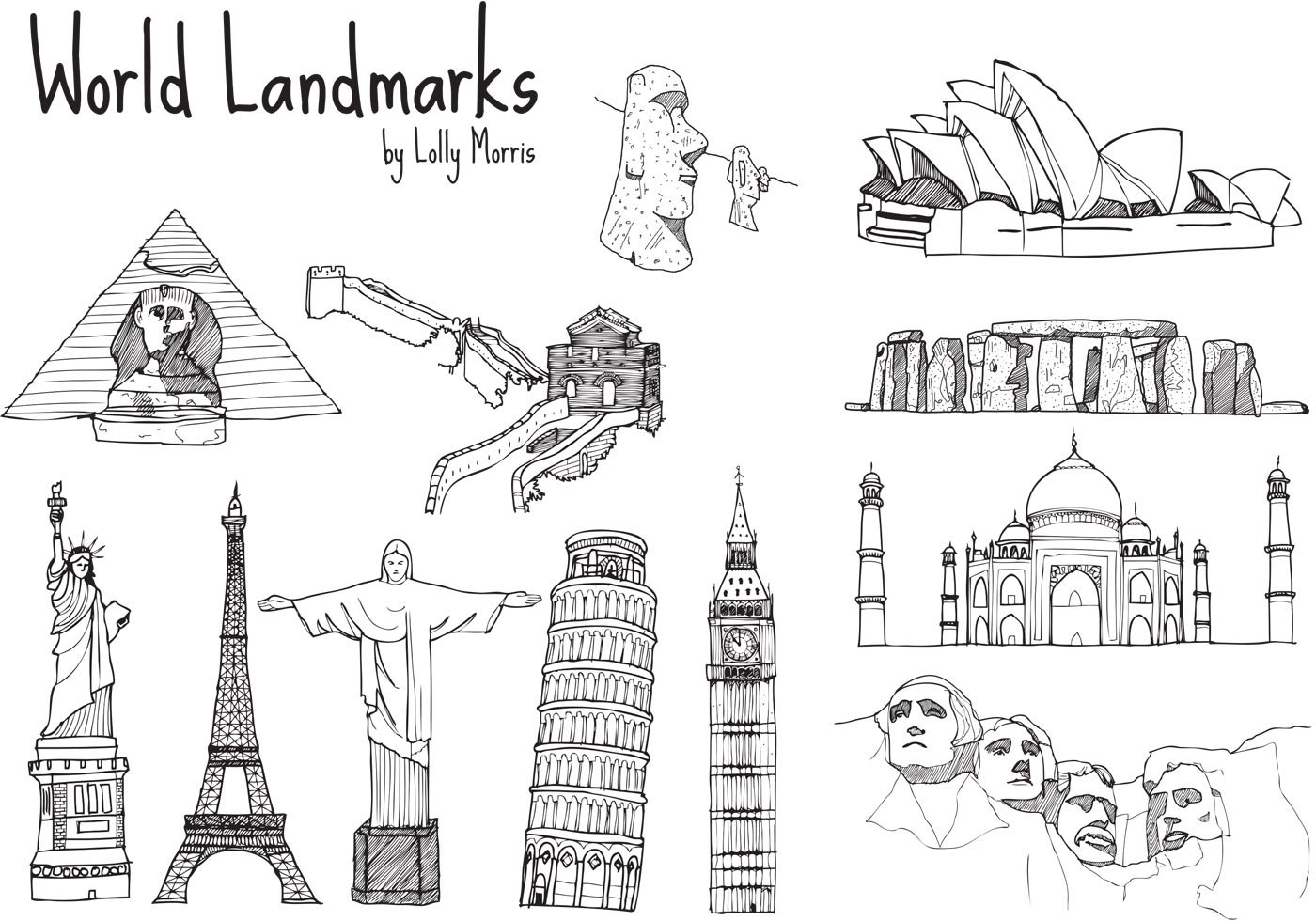 ![Мировые достопримечательности рисунки]()