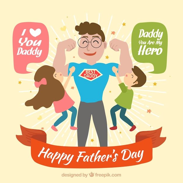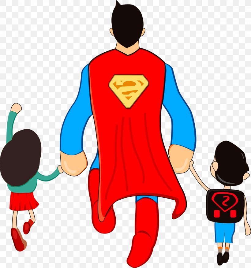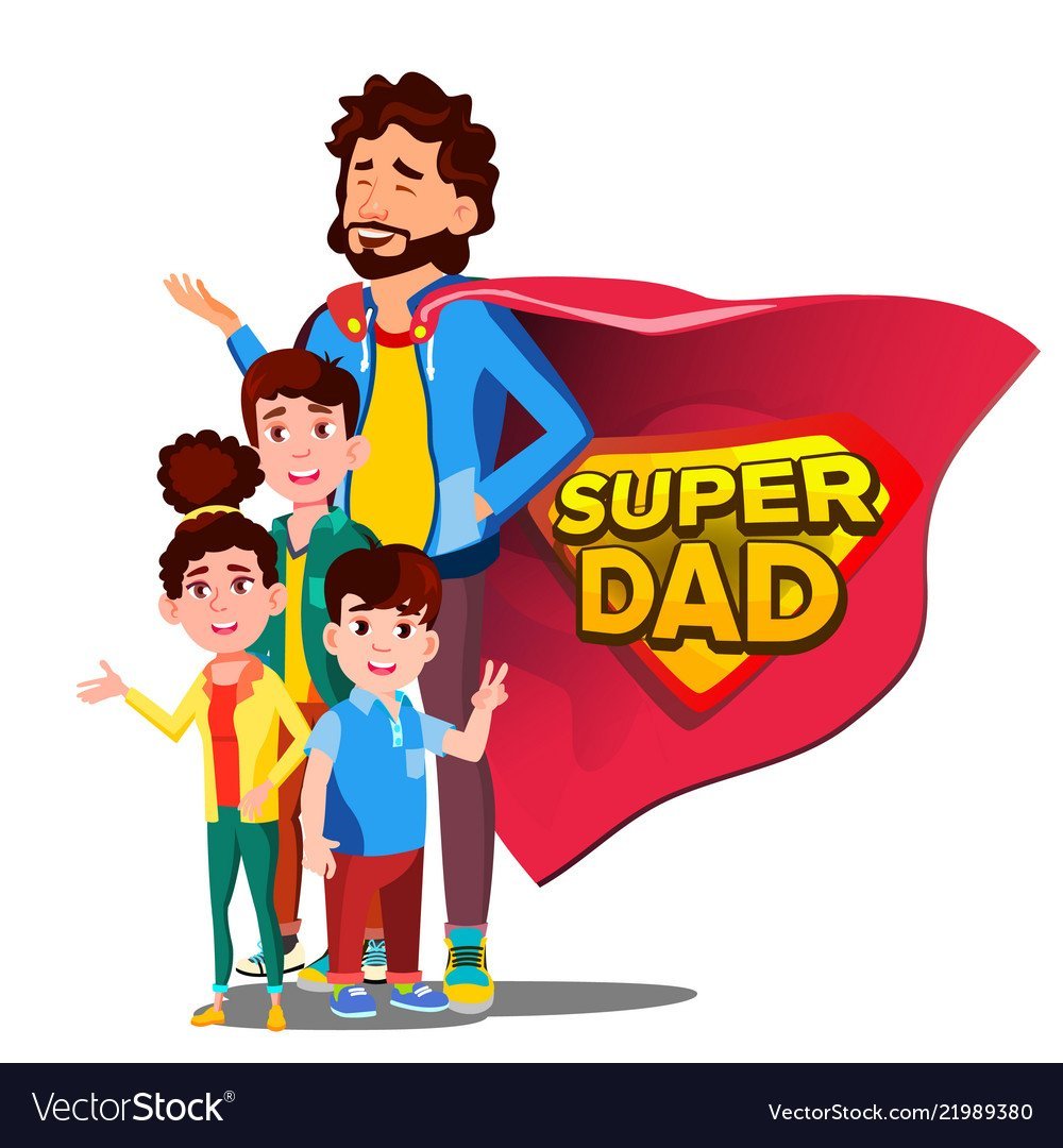 ![Супергерой папа с детьми]()