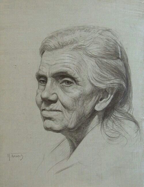 ![Портрет пожилой женщины карандашом]()
