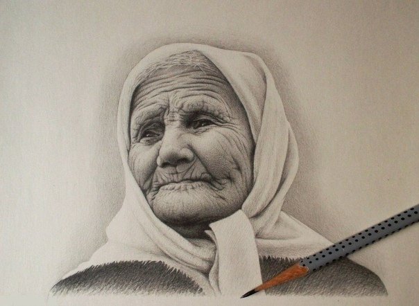 ![Портрет старушки карандашом]()