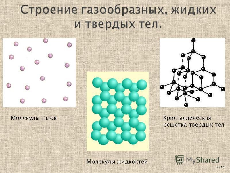 Расположение молекул в твердых телах жидкостях и газах
