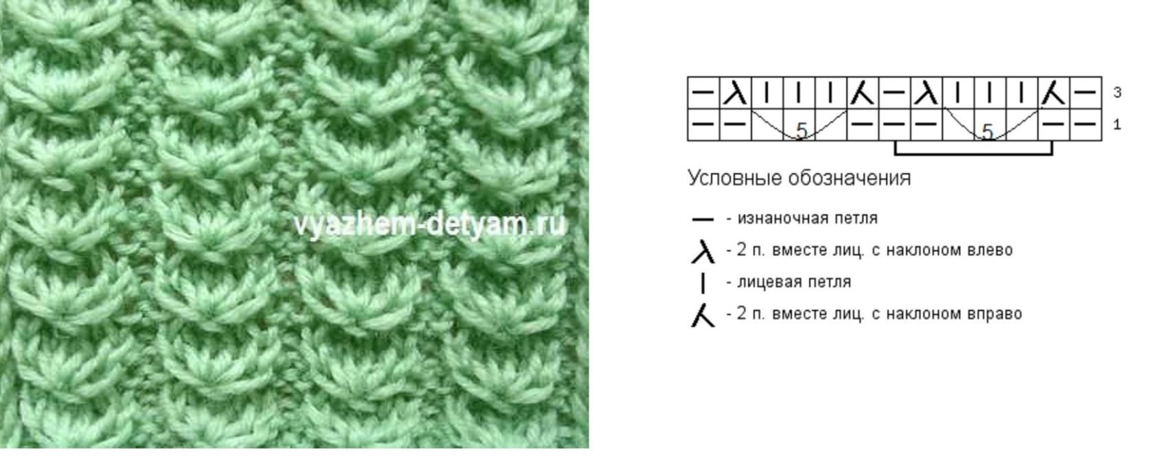 ![Узор спицами кукурузка схема]()