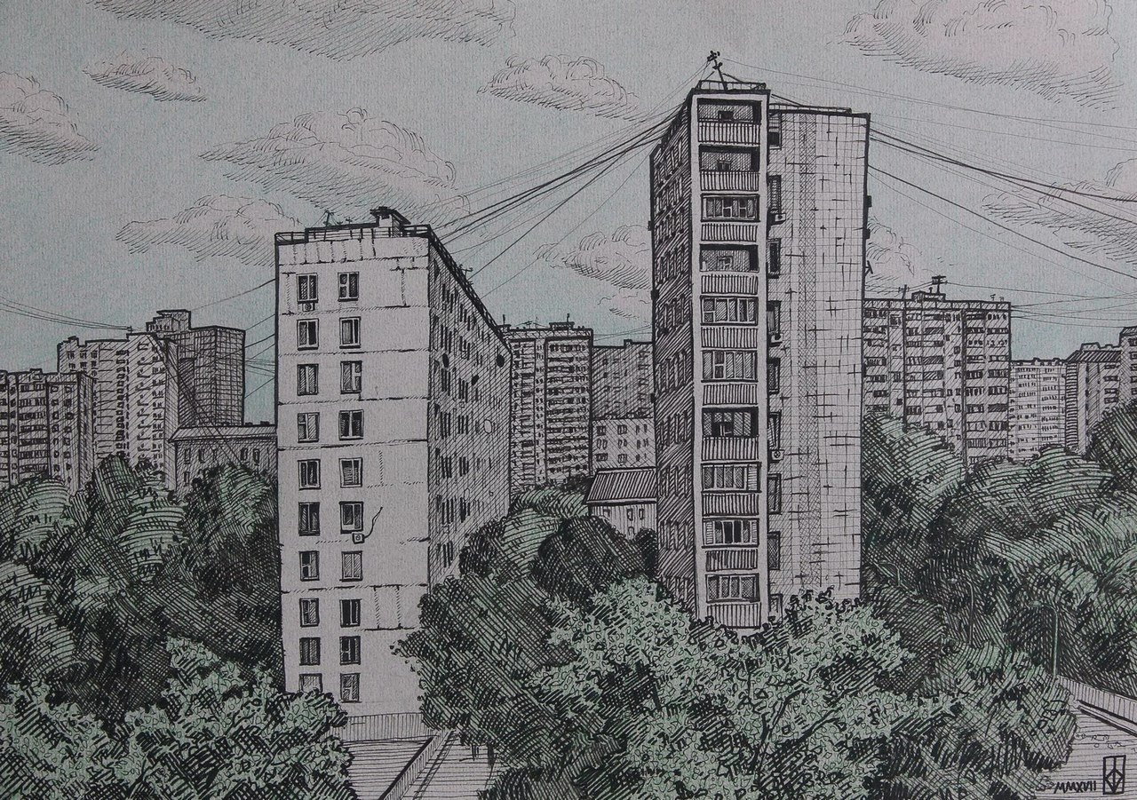 ![Зарисовки панельных домов]()