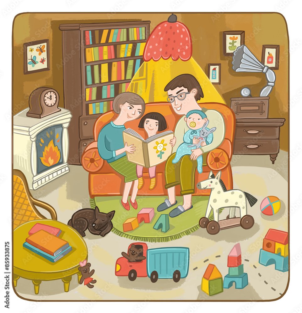 ![Семья в комнате вечером]()