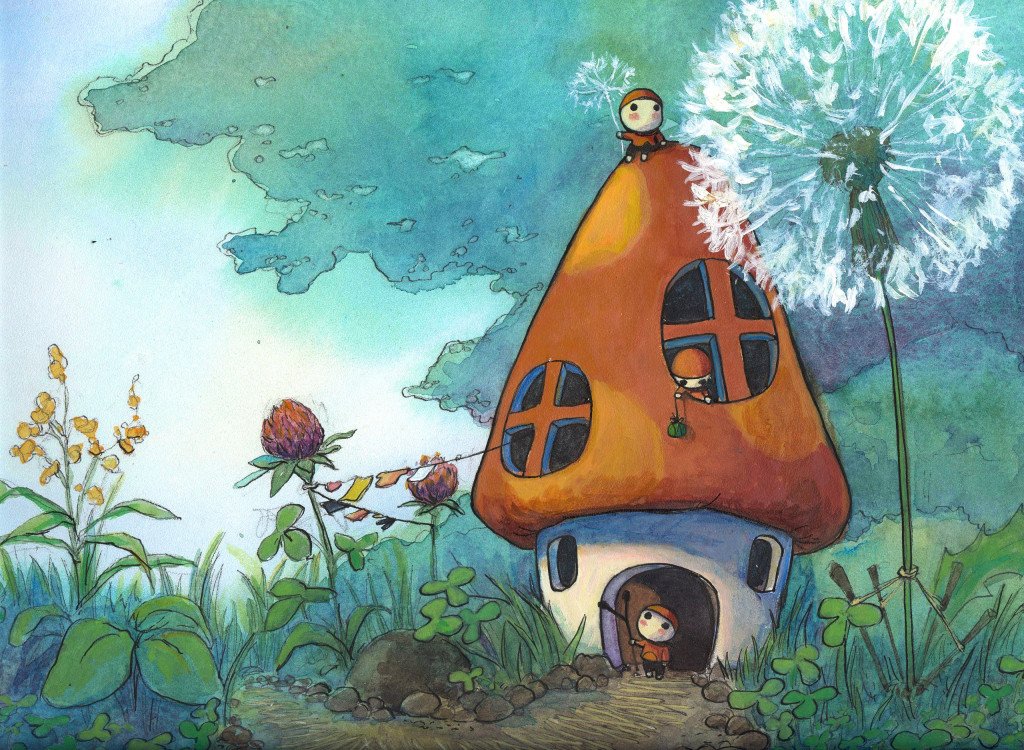 Домик феи акварель
