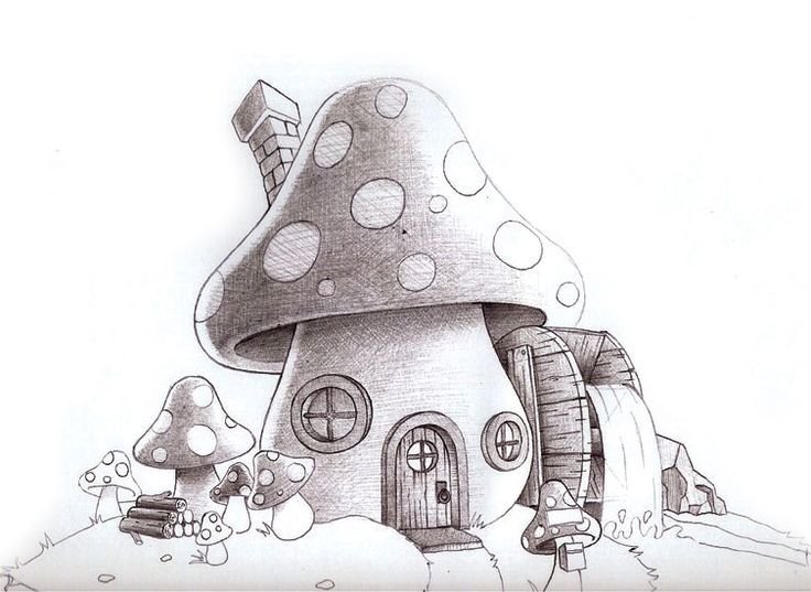 ![Нарисовать дом гриб]()