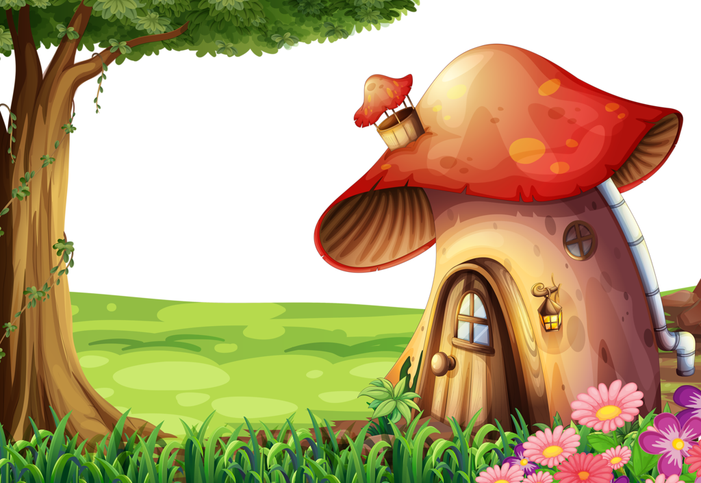 ![Разноцветные домик гриб на прозрачном фоне]()