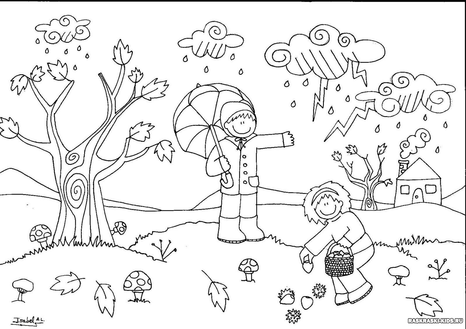 Рисунок осень раскраска