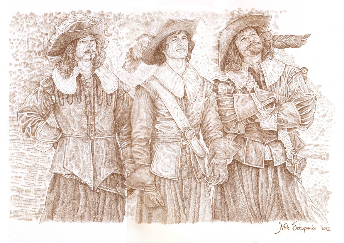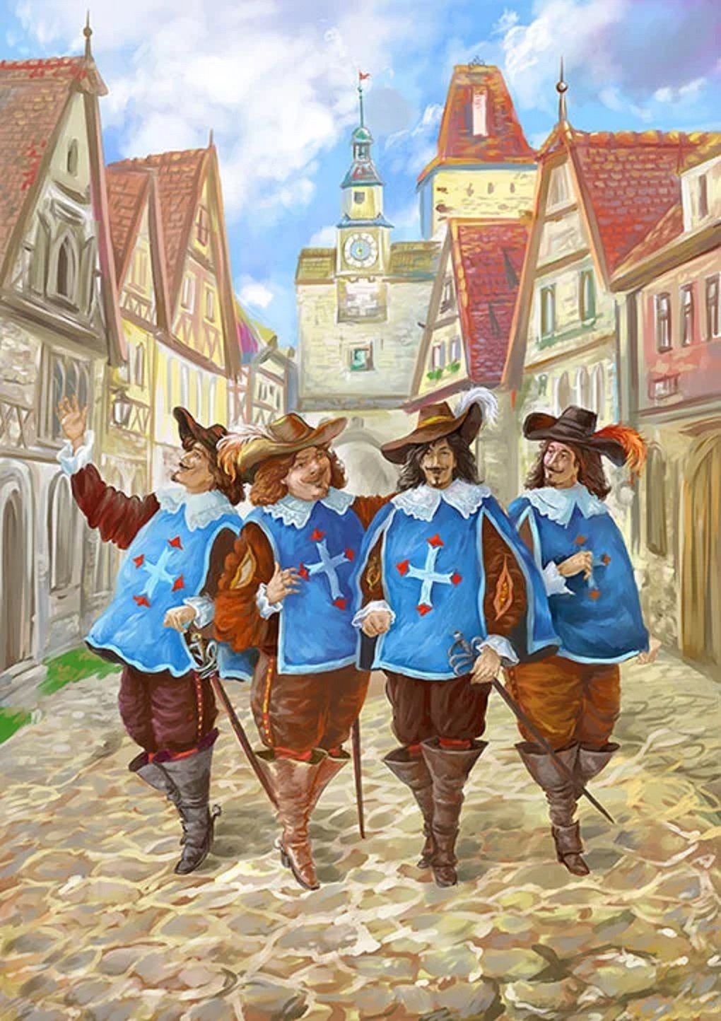 Рисунок "Три мушкетера" - это великолепное произведение искусства, которое отображает знаменитых героев романа Александра Дюма. На этой картины мы видим трёх бравых мушкетёров - Атоса, Портоса и Арамиса, в их традиционных одеждах и с оружием в руках, готовых защищать честь и верность своей королевы. В каждой детали рисунка просматривается мастерство художника, который передал динамику и атмосферу приключений, характерные для этого литературного произведения. Рисунок "Три мушкетера" является не только изображением знаменитых героев, но и символом доблести, дружбы и преданности, который может стать прекрасным украшением любого интерьера или подарком для поклонника литературы и истории.
