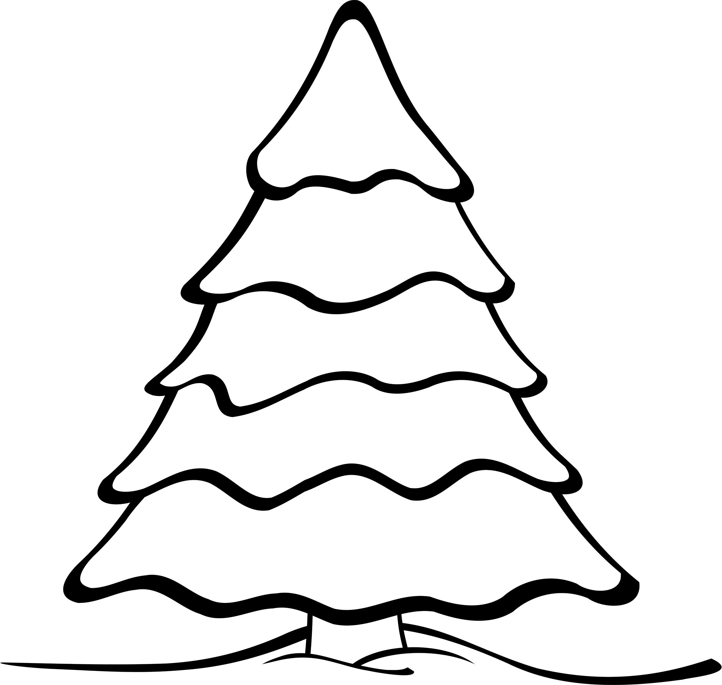 Контур елки на белом фоне