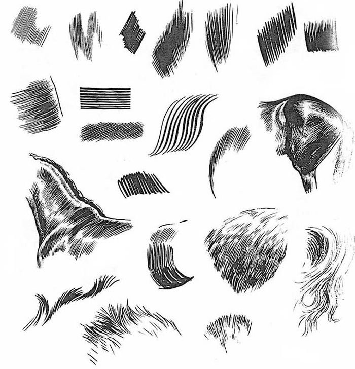 ![Зарисовка шерсти зверей]()