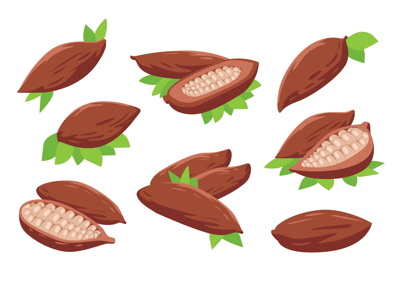 ![Какао Бобы листья вектор]()