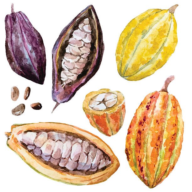 ![Какао Бобы иллюстрация акварель]()