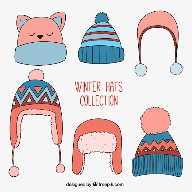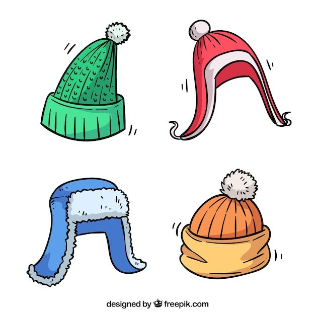 ![Мультяшные зимние шапки]()
