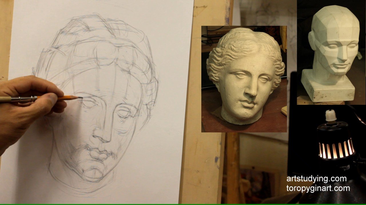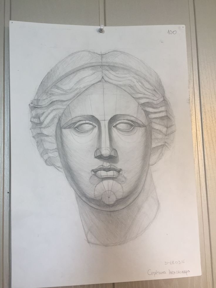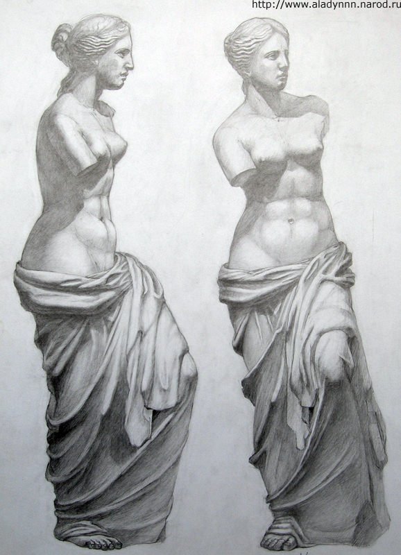 ![Рисунок гипсовой головы Венеры МАРХИ]()