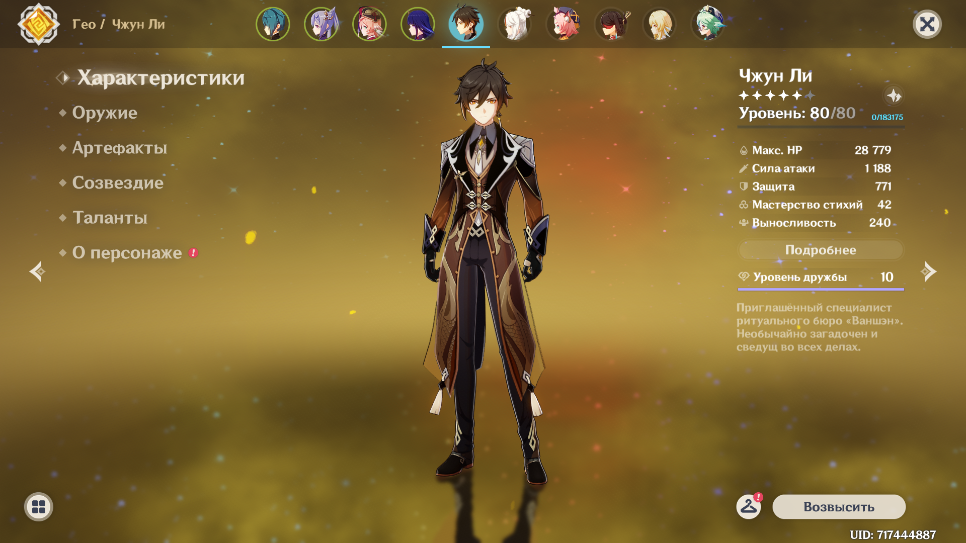 Чжун ли Геншин официальный арт карточка