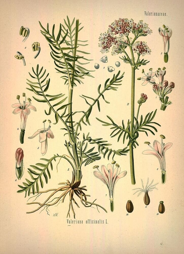 Валериана лекарственная Ботаническая иллюстрация