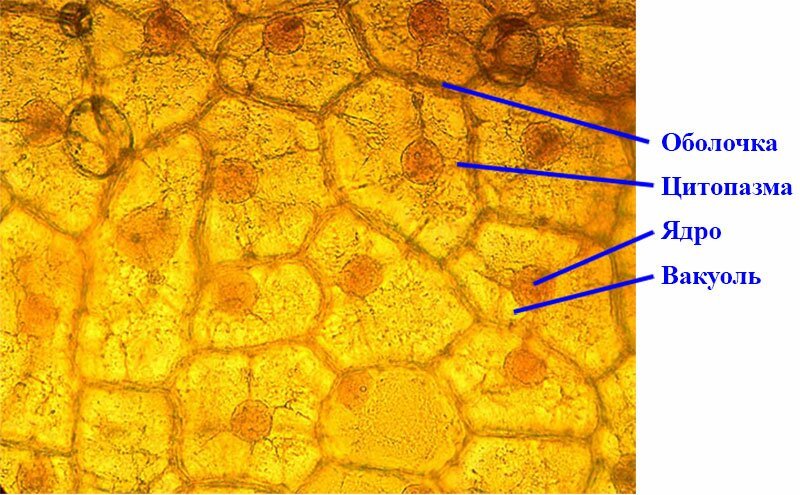 ![Клетки эпидермиса лука с подписями]()