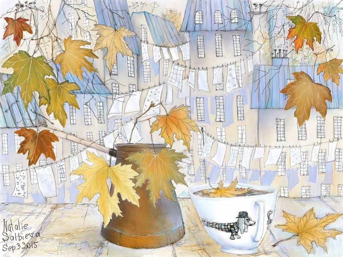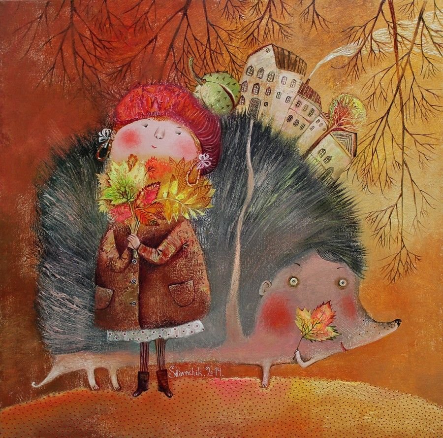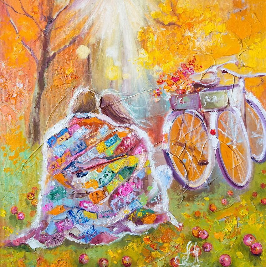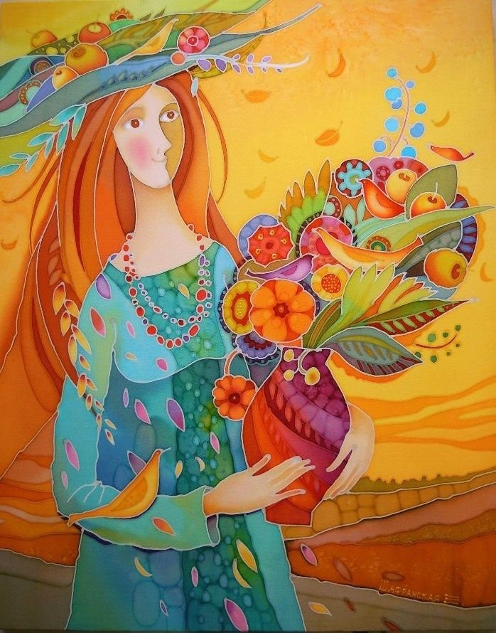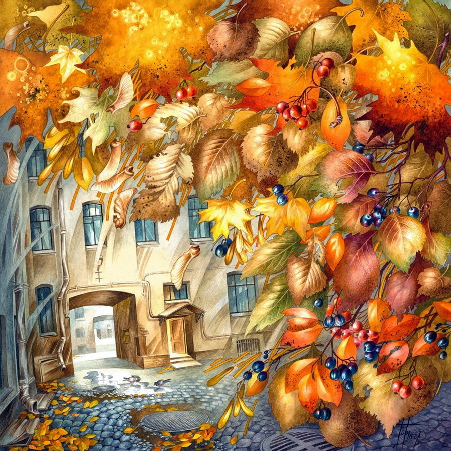 Художница в своем рисунке передает атмосферу осени с помощью ярких и насыщенных оттенков. Она изображает золотистые листья, падающие с деревьев, создавая ощущение движения и плавности. В центре композиции можно увидеть одинокое дерево, обрамленное ярким небом и смягченным светом заката. Все элементы рисунка пронизаны теплой и умиротворяющей энергией, которая характерна для осеннего времени года. Этот рисунок приносит радость и вдохновение, идеально подходя для декорации интерьера или как подарок любителям искусства.