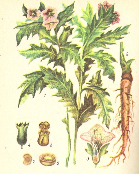 ![Белена Ботаническая иллюстрация]()