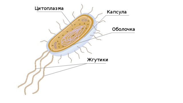 ![Строение прокариотической клетки со жгутиками]()