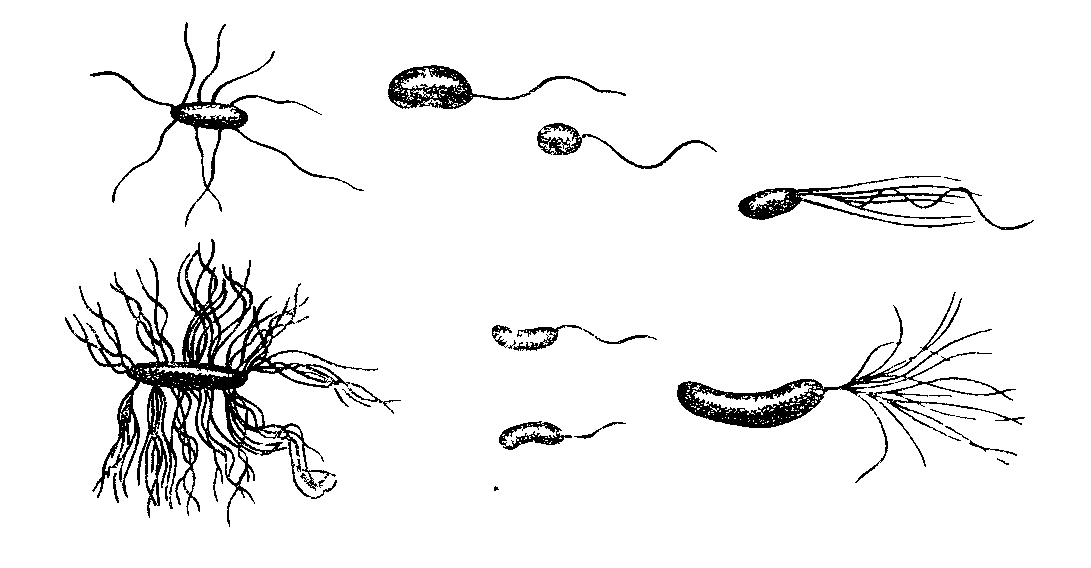 ![Бактерии со жгутиками и ресничками]()
