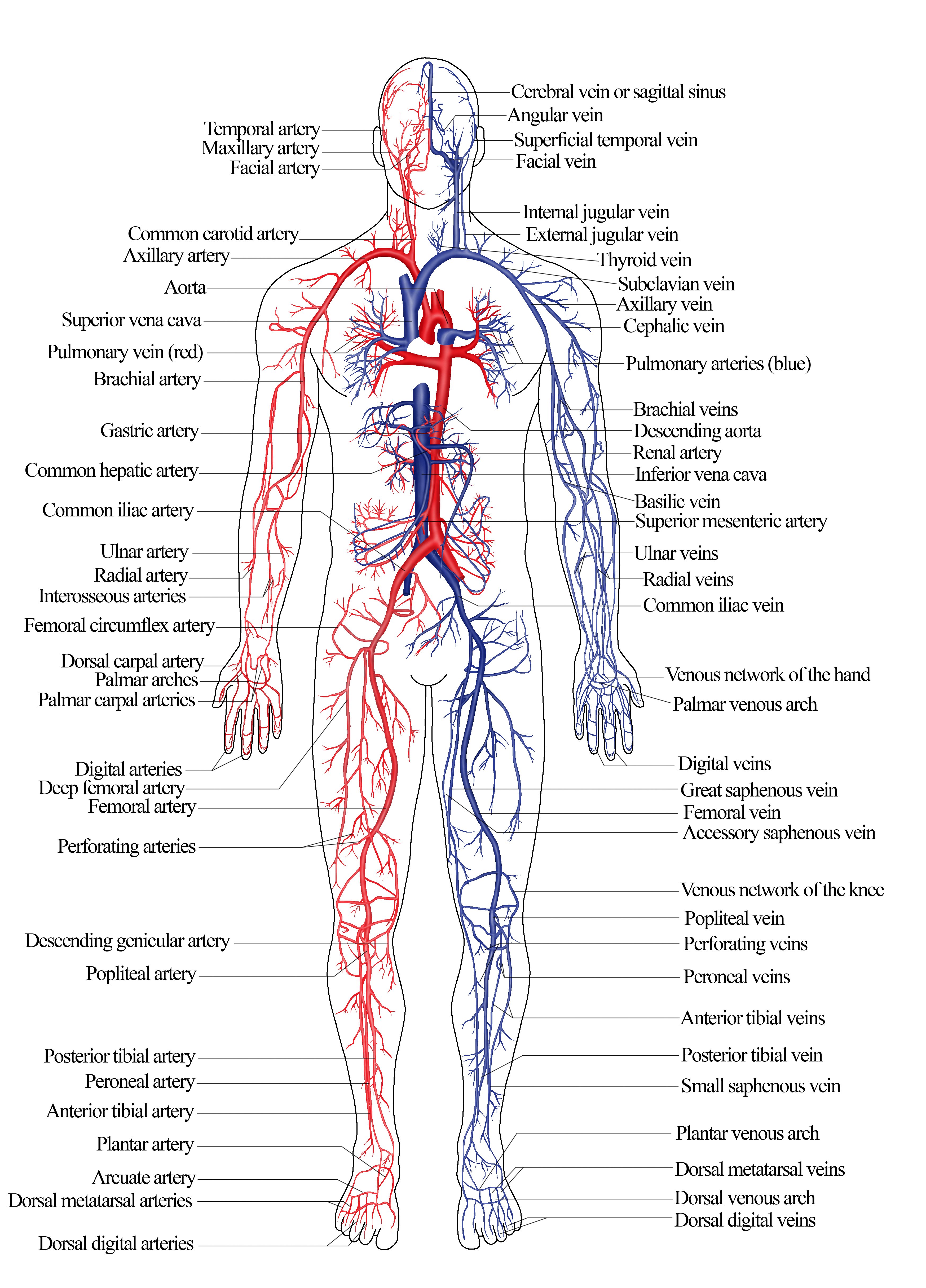 Схема артериальной и венозной системы человека