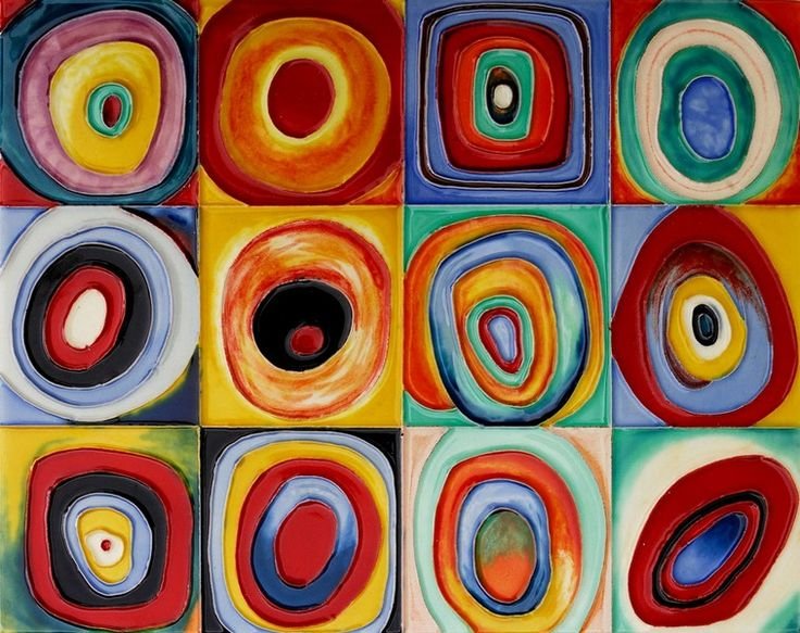 ![Квадраты с концентрическими кругами Кандинский 1913]()
