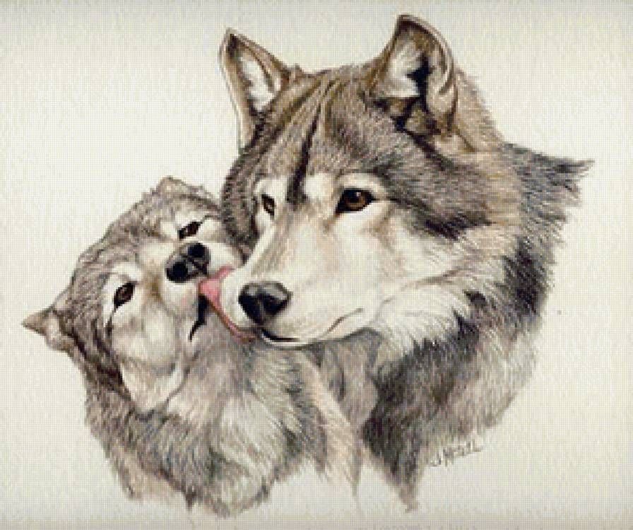 ![Волк и волчица рисунок]()