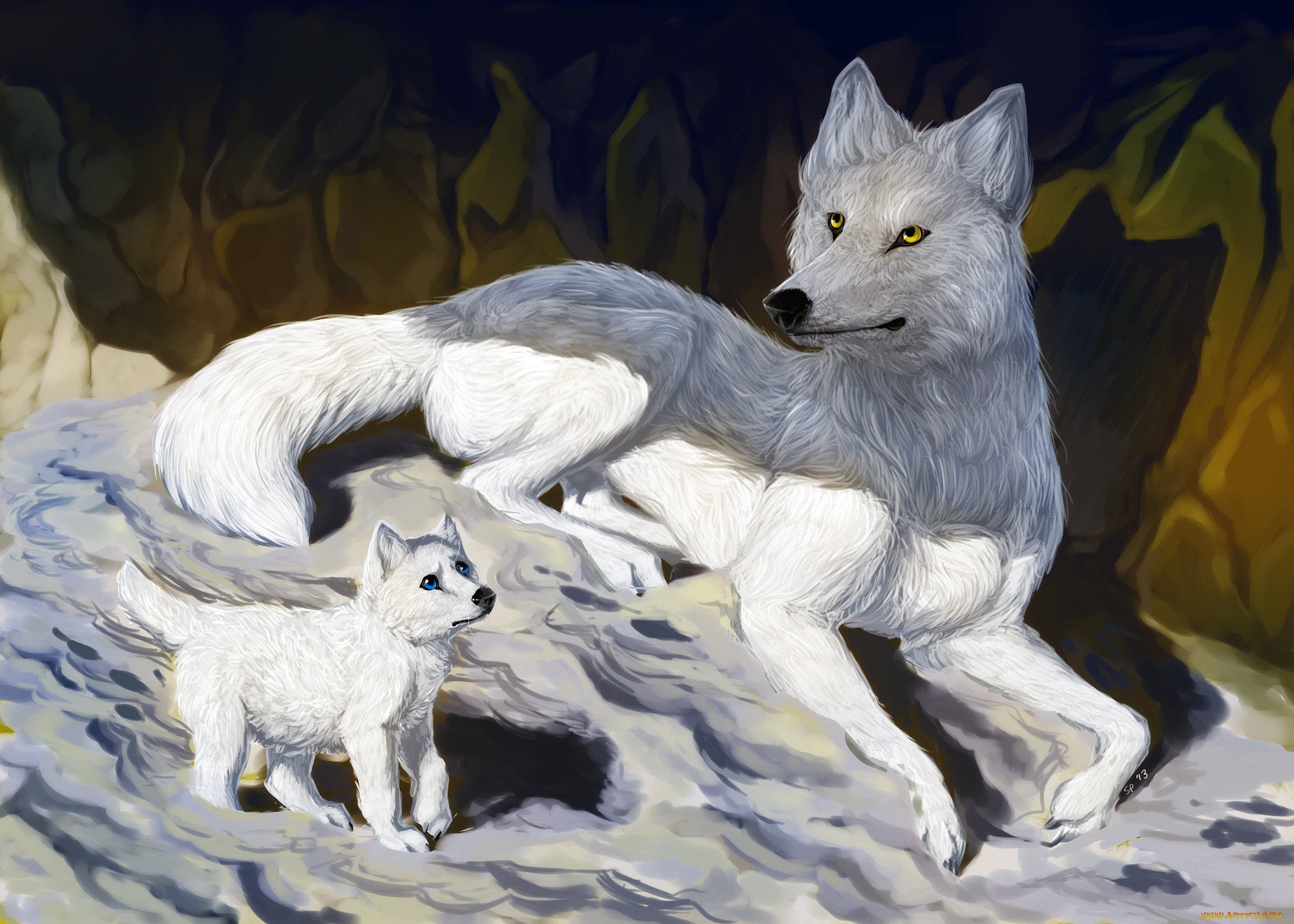 ![Волк волчица и Волчонок арт]()