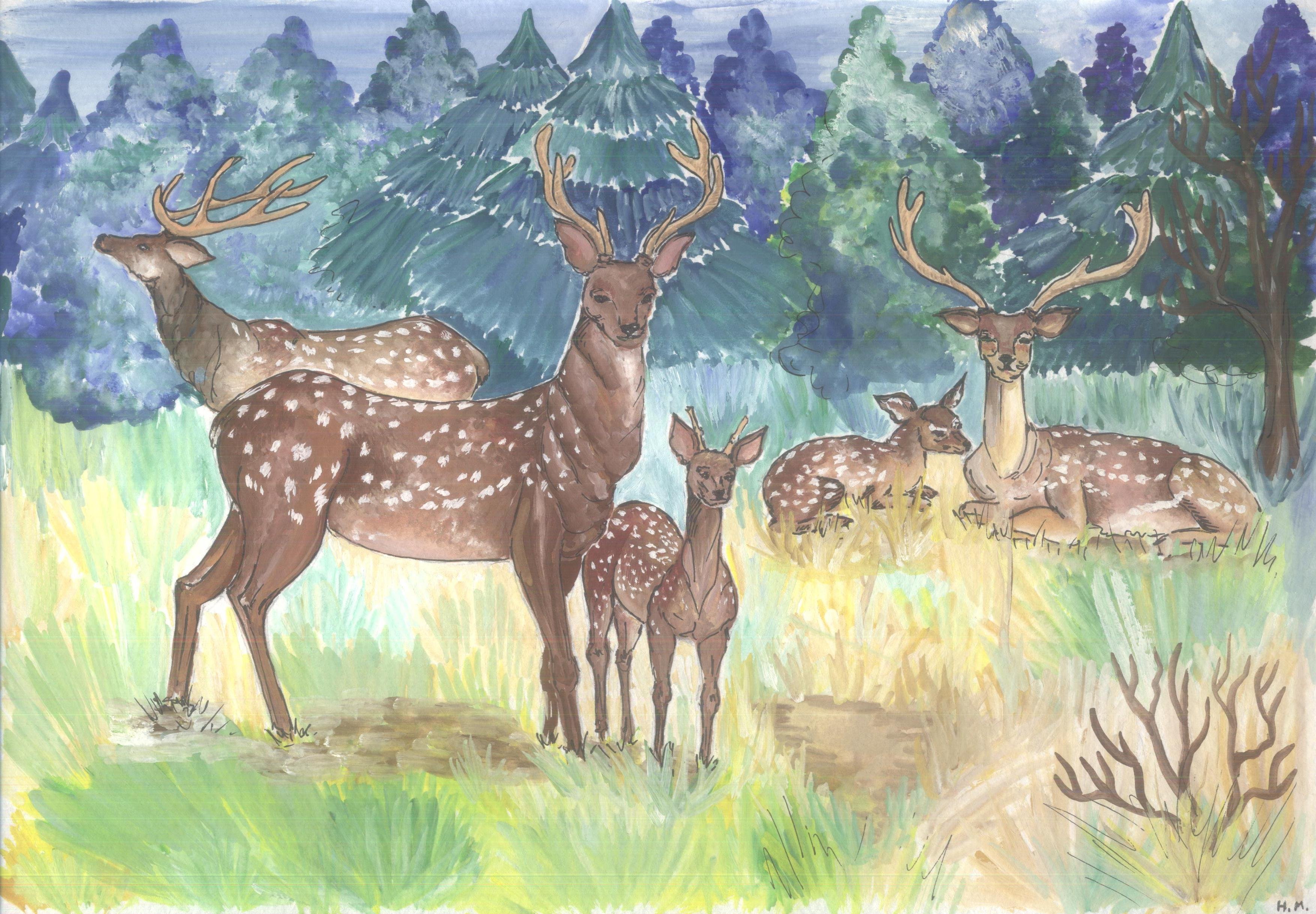 Рисунки пятнистый олень детские