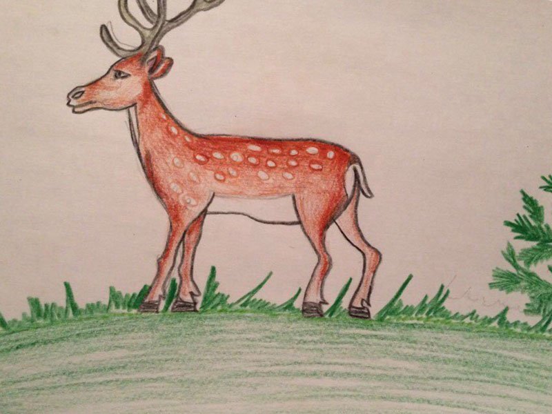 Пятнистый олень рисунок детский